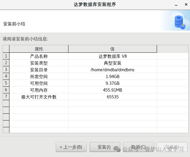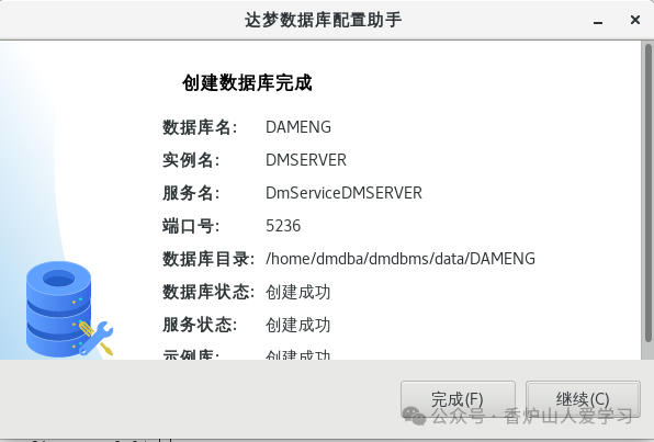 [root@localhost root]# /home/dmdba/dmdbms/script/root/root_installer.sh 移动 /home/dmdba/dmdbms/bin/dm_svc.conf 到/etc目录 创建DmAPService服务 Created symlink from /etc/systemd/system/multi-user.target.wants/DmAPService.service to /usr/lib/systemd/system/DmAPService.service. 创建服务(DmAPService)完成 启动DmAPService服务