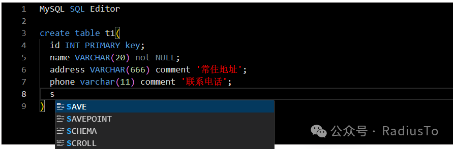 已经内置了非常丰富的代码关键字库,java,sql,c, json, javascript 等 ,vscode 支持的它均能支持。这里我们直接引入内置的 sql 关键字库,组装数据。