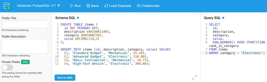 DB Fiddle:在线 SQL 数据库游乐场