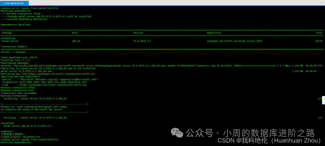[root@localhost ~]# rpm -ivh root/mssql-server-15.0.4375.4-1.x86_64.rpm