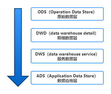 ODS层: 原始数据层,存放原始数据,直接加载原始日志、数据,数据保持原貌不做处理。