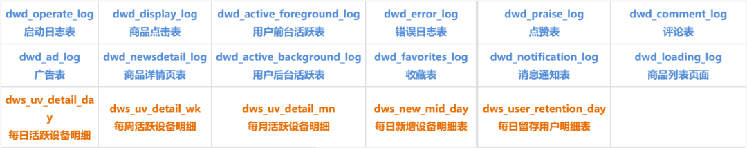 2.4节我们已经描述了数据分层的好处。我们以实际应用中所用数据表的划分来看下各个分层中具体放了哪些数据。