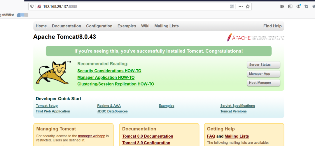 3.访问链接http://192.168.29.137:8080/,查看是否搭建成功