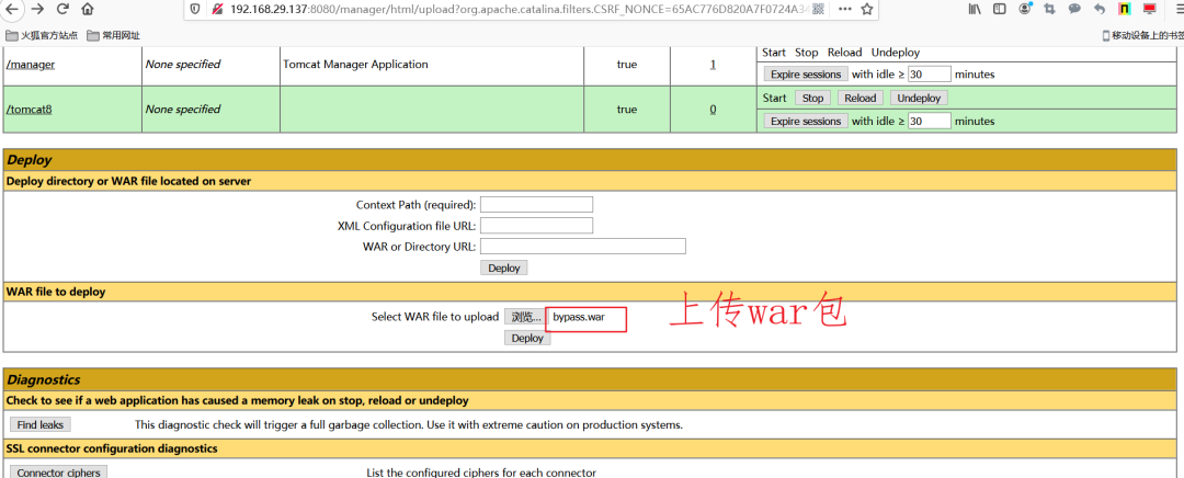 1.使用弱口令tomcat\tomcat直接登录到后台管理界面