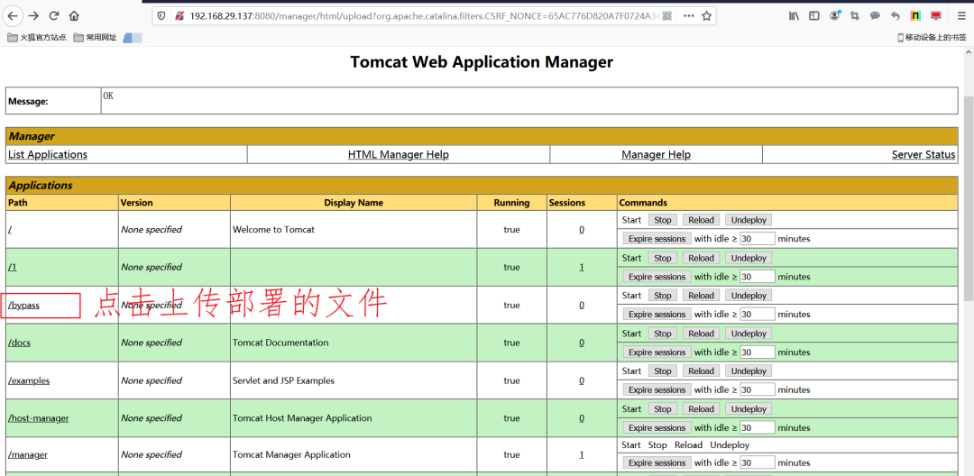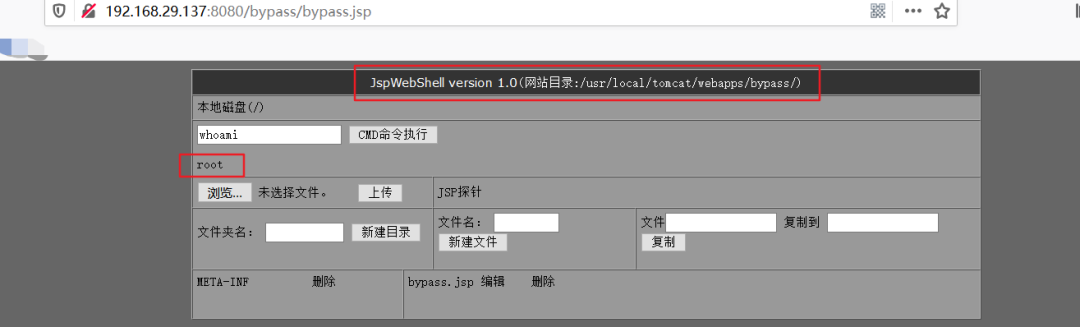4. 在URL后面输入/bypass.jsp(上传的木马的文件名称),构成URL为: