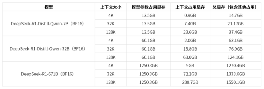 (4)DeepSeek 相关各类模型规模和量化方式下的显存需求概览