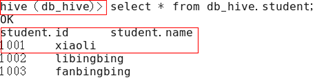 在仓库目录下,没有对默认的数据库default创建文件夹。如果某张表属于default数据库,直接在数据仓库目录下创建一个文件夹。