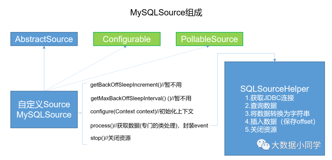 根据官方说明自定义mysqlsource需要继承AbstractSource类并实现Configurable和PollableSource接口。
