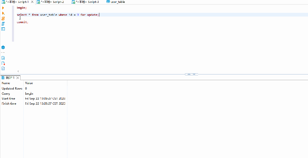 2.select * from user_table where id = 7 for update;