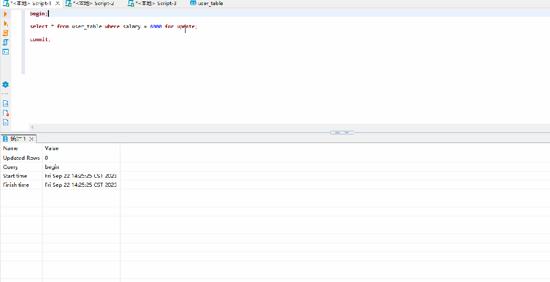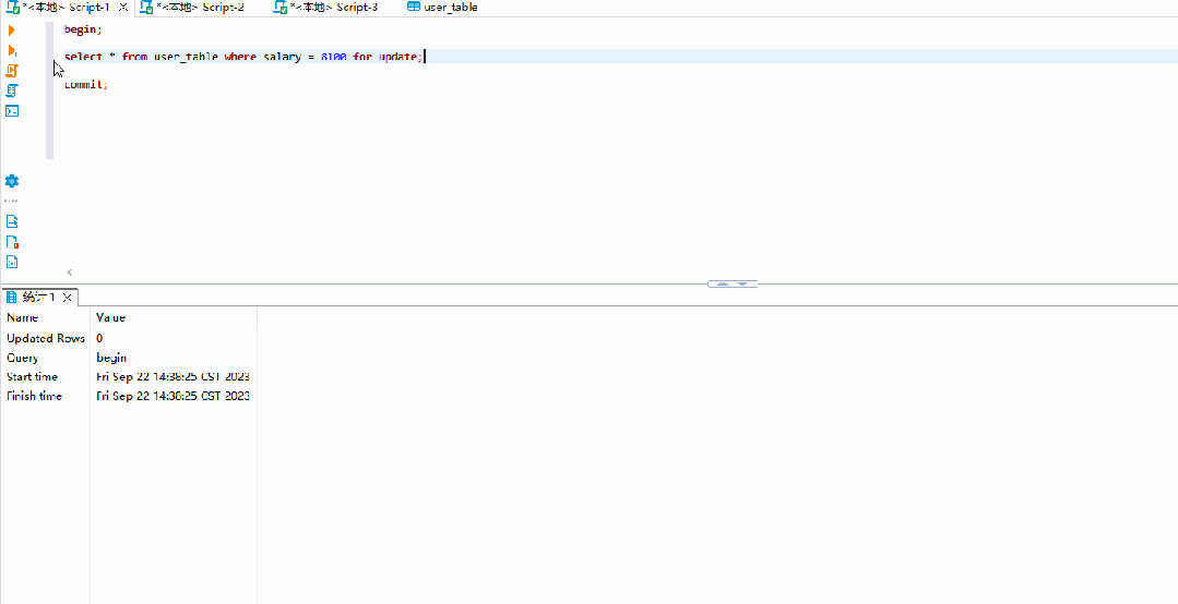 2.select * from user_table where salary = 8100 for update;