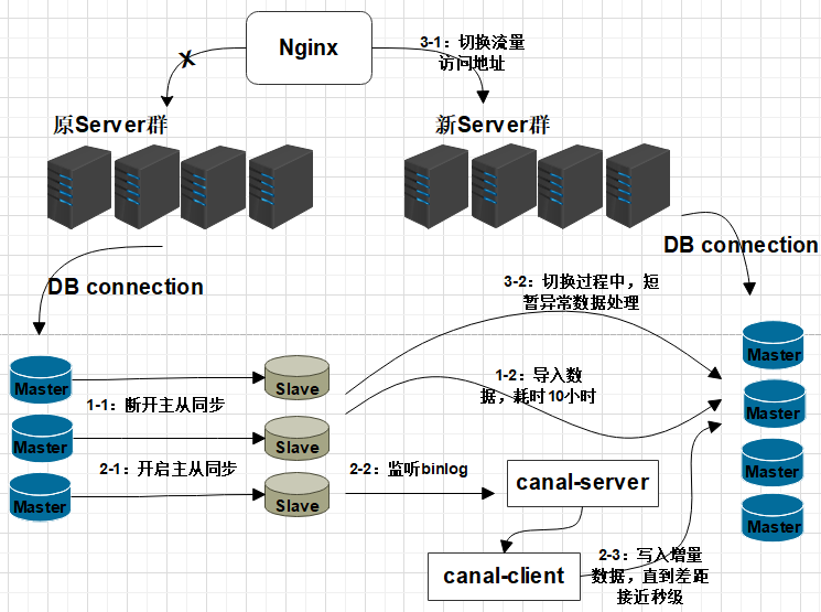 切换新库:通过Nginx,切换访问流量至新的服务。