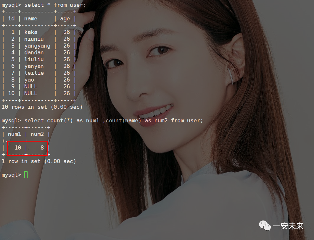 的值取出来,而是指定了count(*)