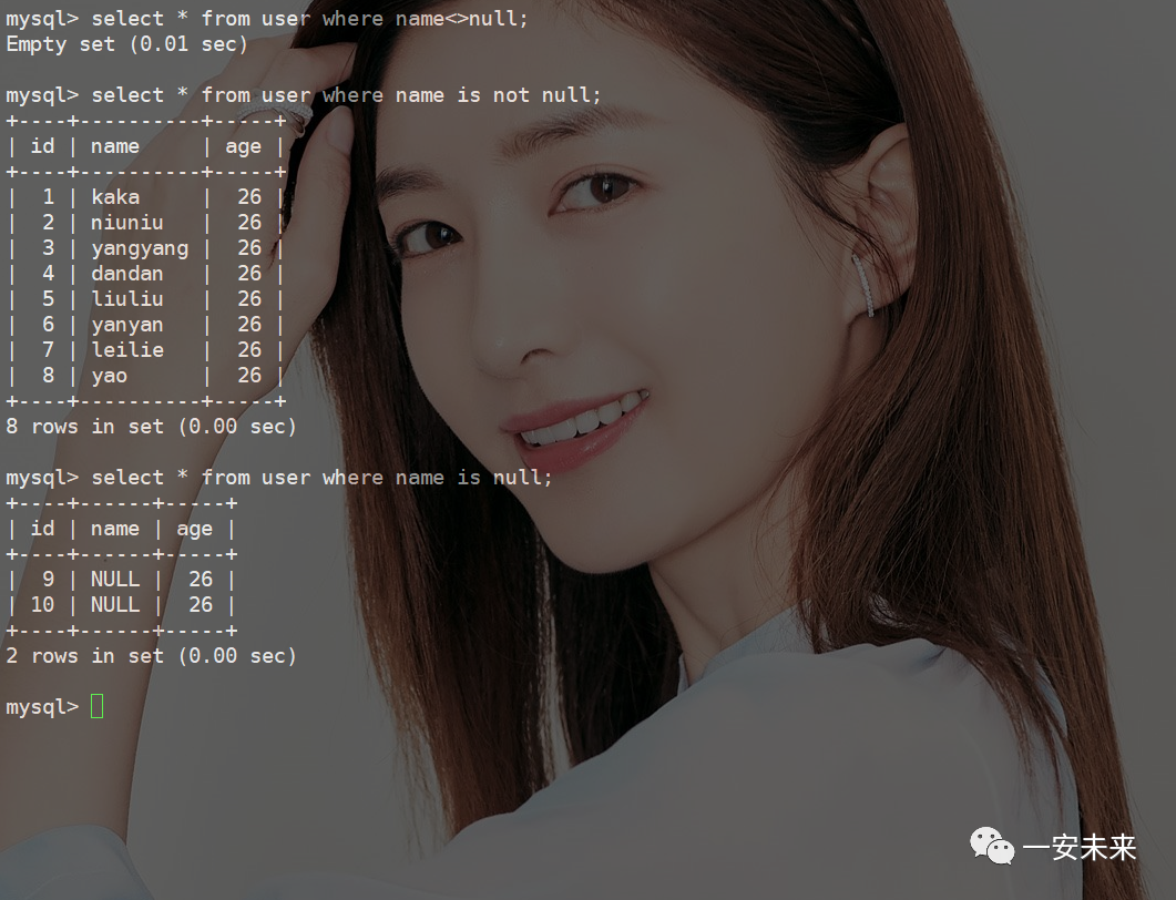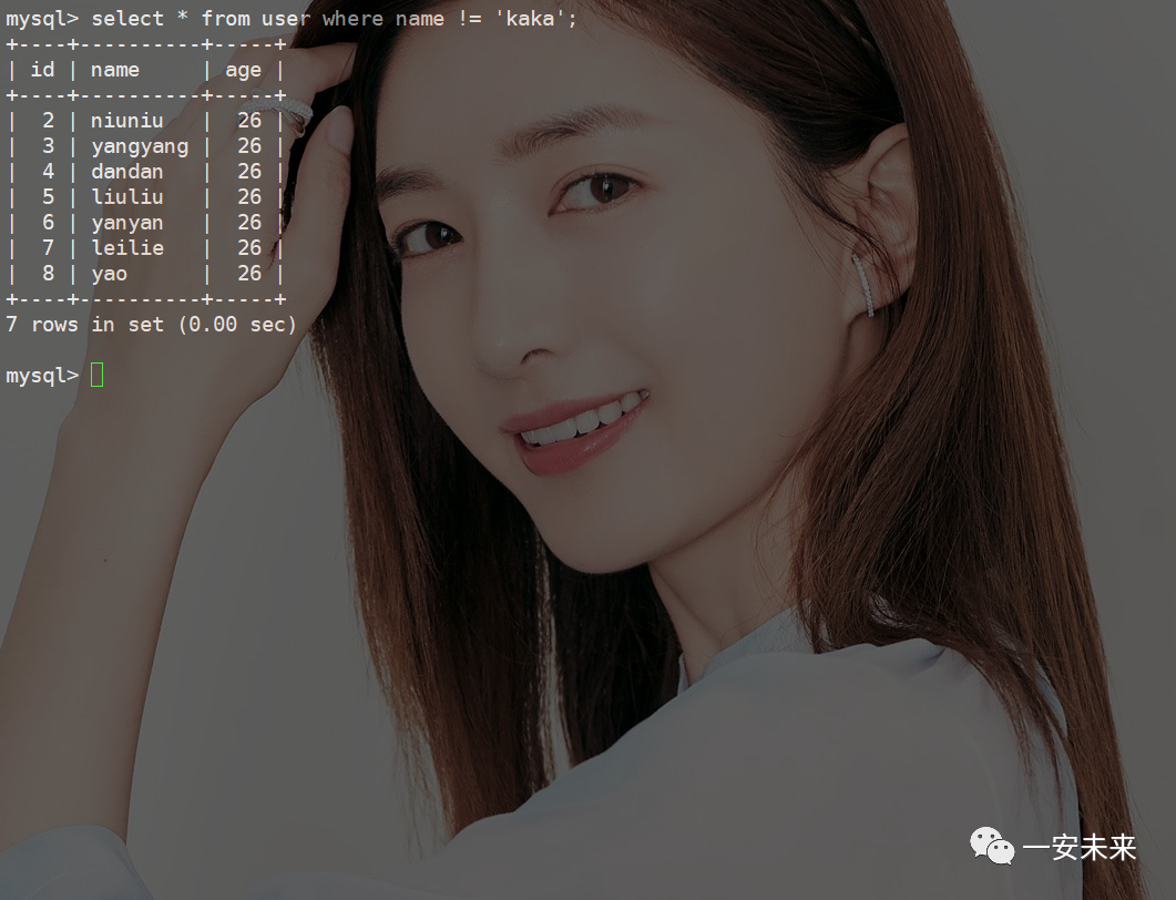 INSERT INTO `user` (`name`, `age`) VALUES ('yanyan', 26);