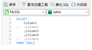 这类似于另一种在列名之前而不是之后加入逗号的技巧。同样,更容易注释:
