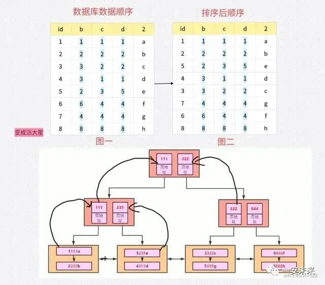 看到这里还可以明白一个道理 为什么我们建立索引的时候不推荐建立在经常改变的字段 因为这样的话我们的索引结构就要跟着你的改变而改动 所以很消耗性能