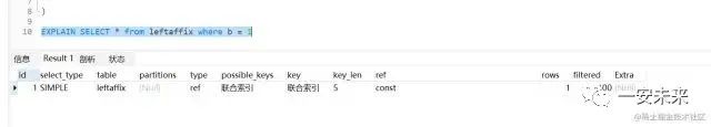 首先我们在上一个验证中创建了联合索引 我们使用B=1 会走索引 但是 与直接查询索引字段不同 使用SELECT*,获取了不需要的数据,则首先通过辅助索引过滤数据,然后再通过聚集索引获取所有的列,这就多了一次b+树查询,速度必然会慢很多,减少使用select * 就是降低回表带来的损耗。
