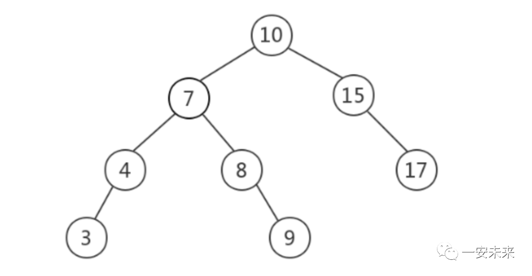 二叉查找树(BST,Binary Search Tree),也叫二叉排序树,在二叉树的基础上需要满足:任意节点的左子树上所有节点值不大于根节点的值,任意节点的右子树上所有节点值不小于根节点的值。如下是一棵二叉查找树: