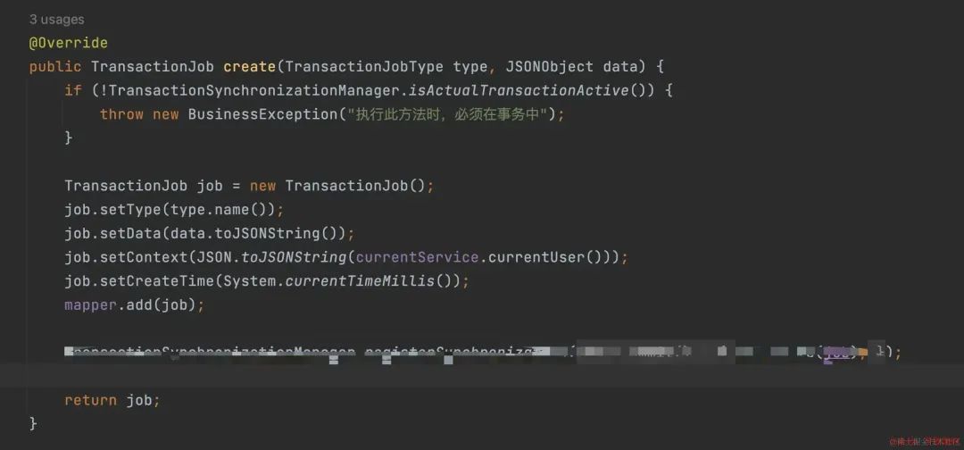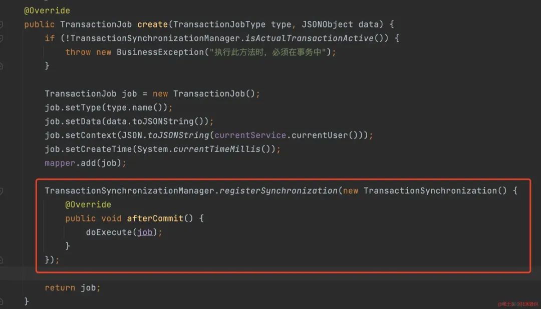 其中步骤2(插入任务数据的代码)的具体实现如下(transactionJobService.create