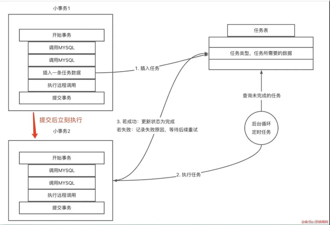 如果小事务顺利执行,会立刻将该任务改为“成功”,因此从用户端是感受不到延迟的