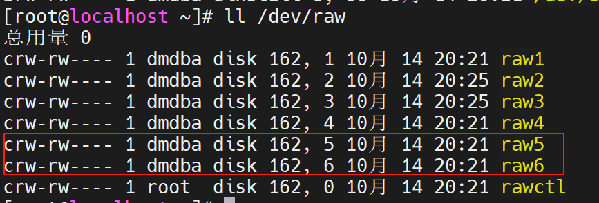 [root@localhost ~]# ll /dev/raw