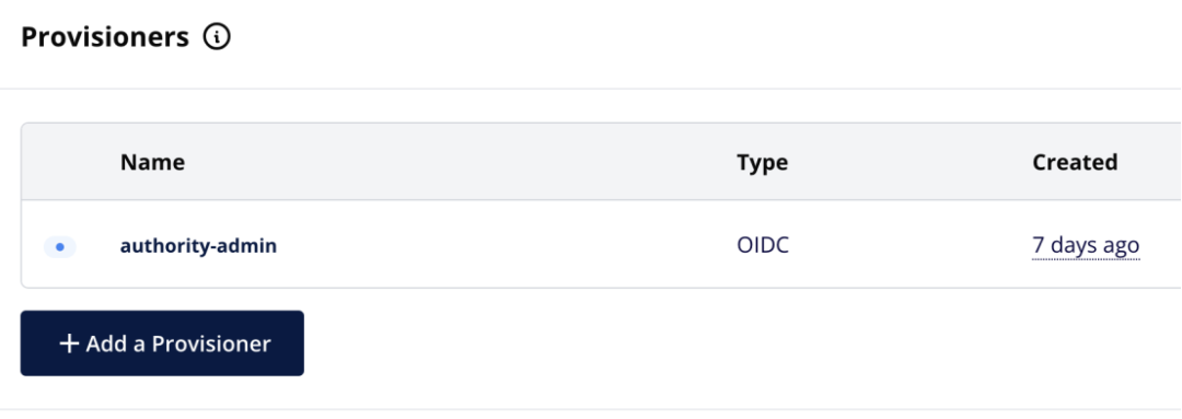 不考虑未来生成证书自动更新,所以在帐号smallstep accounts下创建一个自己的provisioners(供应者)-authority-admin,用于定义自己证书的生命周期管理。