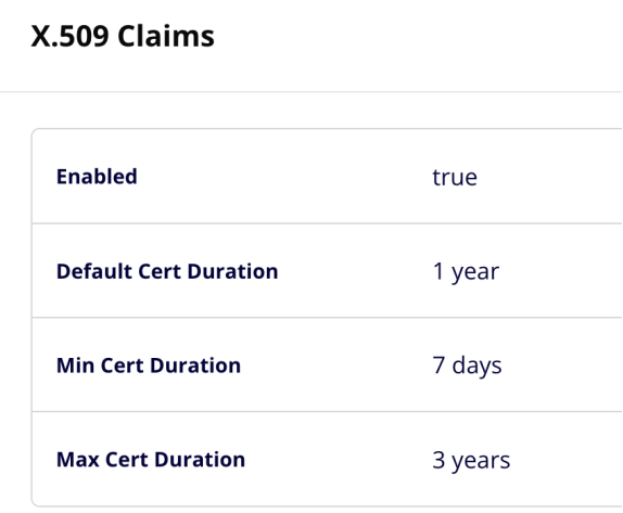 $ step certificate inspect server.crt --shortX.509v3 TLS Certificate (ECDSA P-256) [Serial: 1423...4703]Subject: epas-1.test.cxmIssuer: Smallstep Accounts Intermediate CAProvisioner: authority-admin [ID: 2123...8911]Valid from: 2025-01-16T18:50:27Zto: 2026-01-16T18:51:27Z