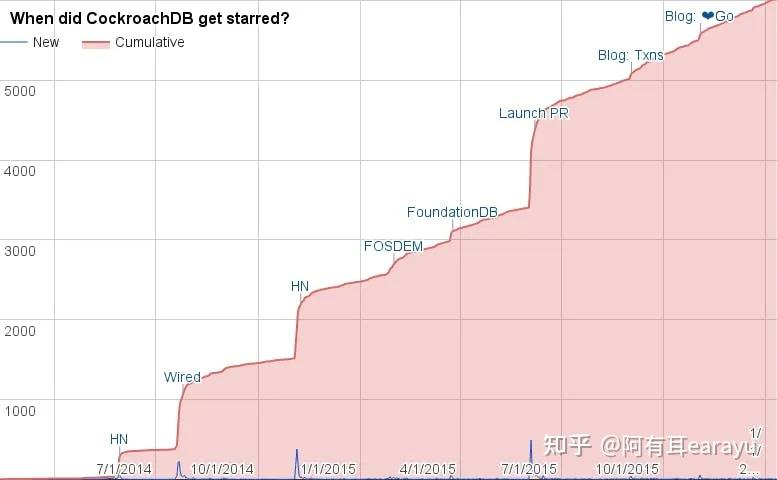 类似的例子还有 CockroachDB。它们曾在官网发布一篇 Blog,文中提到 CockroachDB 项目的关注度冷启动就是因为他们上了 2 次 HackerNews 首页,这给他们带来了上千个 star。