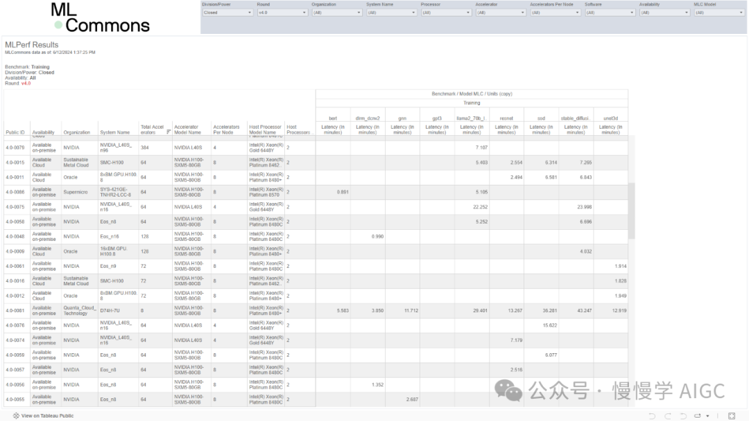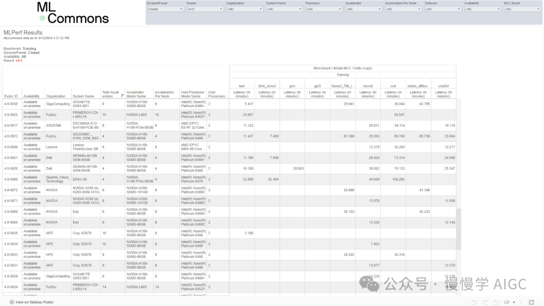 欲查看 MLPerf 训练基准测试 v4.0 的全部结果和其他基准测试的更多信息,请访问训练基准测试页面【4】。