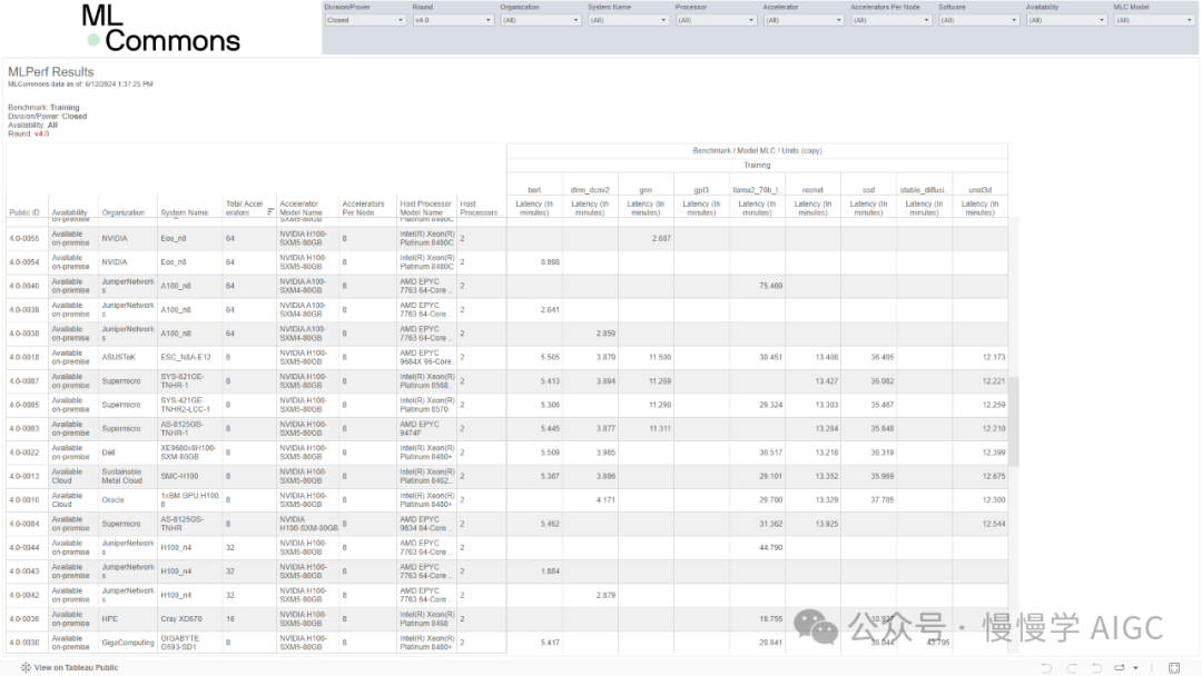 2024 年 6 月 12 日,MLCommons 公布了 MLPerf 训练基准测试 v4.0 的新结果,包括首次针对两项新基准测试的结果:LLama 2 70B 的 LoRA 微调和图神经网络(GNN)。
