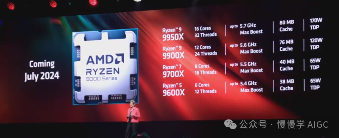 除了旗舰 Ryzen 9950X 之外,AMD 还推出了 12 核、8 核和 6 核版本,以将 Zen 5 的领先性能带到主流价位,所有这些产品将于 2024 年 7 月上市。