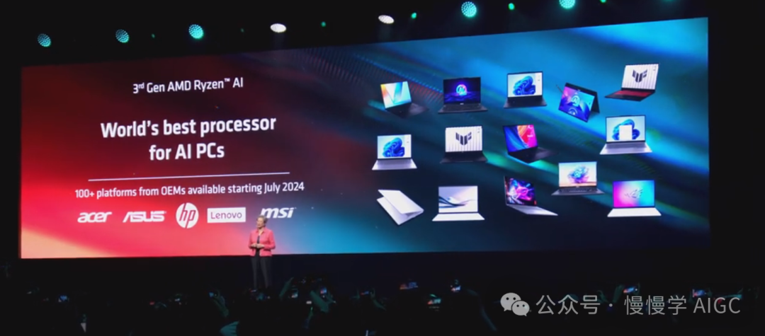 话锋一转,从台式机转向笔记本电脑。今年 Computex 有很多关于笔记本电脑的讨论。自从去年 1 月推出了第一代 Ryzen AI 以来,AMD 实际上一直在推动向 AI PC 的过渡。