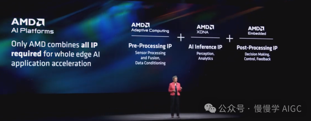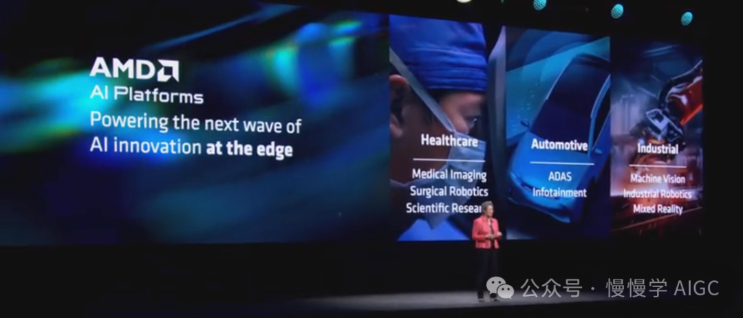 随后苏妈游刃有余地将话题从 PC 转向边缘计算领域。AMD AI 平台已在边缘领域广泛部署。