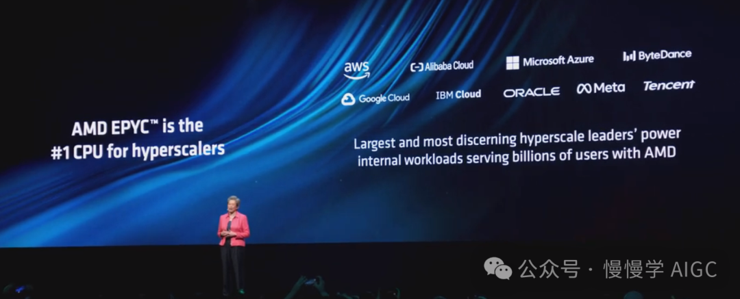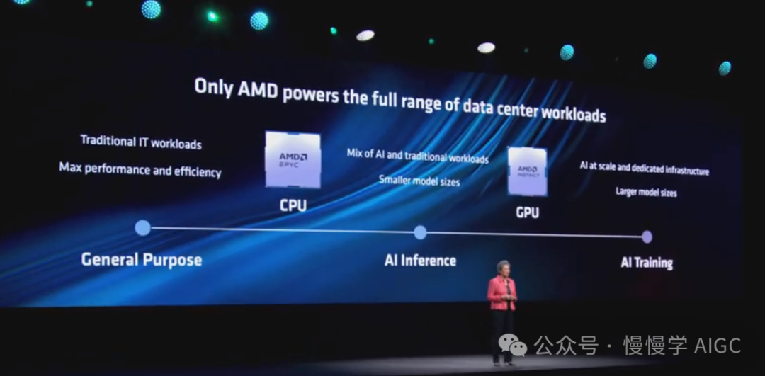 现代数据中心实际上运行着许多不同的工作负载,从传统 IT 应用到较小的企业大语言模型,再到大规模 AI 应用。用户需要不同的计算引擎来处理每一种工作负载,只有 AMD 拥有全套高性能 CPU 和 GPU 产品组合来应对所有这些工作负载。从的 EPYC 处理器(可为通用和混合推理 AI 工作负载提供领先性能)到专为大规模加速 AI 应用而打造的 Instinct GPU。苏妈接下来分享了 AMD 下一代数据中心 CPU 和 GPU 产品的细节。