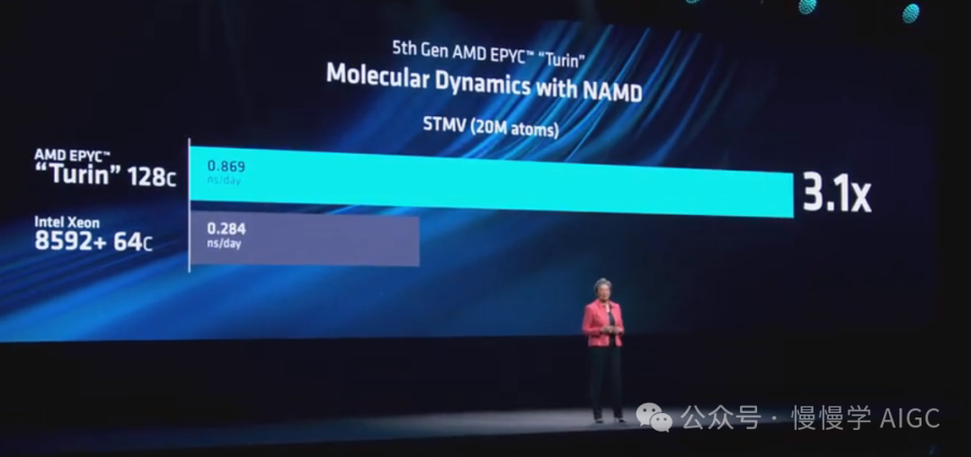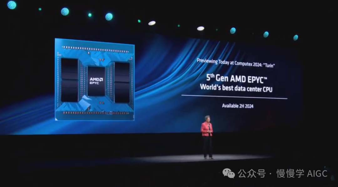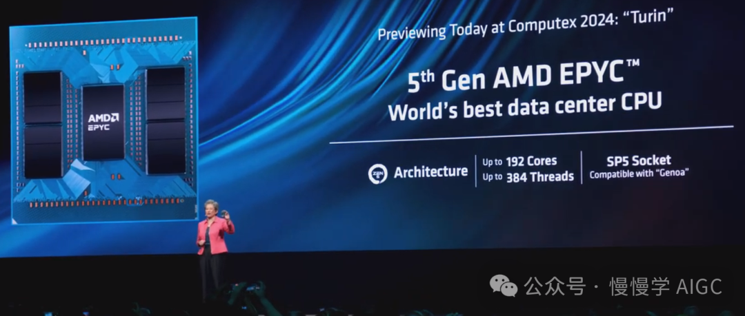 苏妈有备而来,上面第四代 EPYC CPU 只是开胃小菜,接下来向大家展示即将推出的第五代 EPYC 处理器"Turin"。