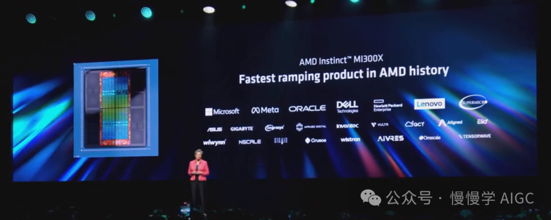 AMD 去年 12 月推出了 MI300X,它迅速成为 AMD 历史上发展最快的产品。微软、Meta 和 Oracle 都已采用 MI300X。所有主要服务器 OEM 都在提供 MI300X 平台,AMD 也与广泛的生态系统 CSP 和 ODM 合作伙伴建立了深入的合作关系。