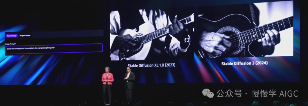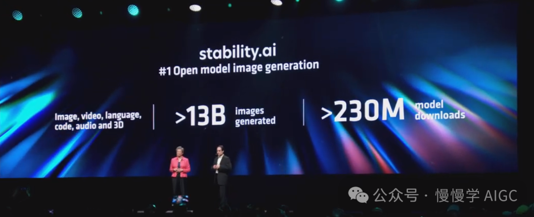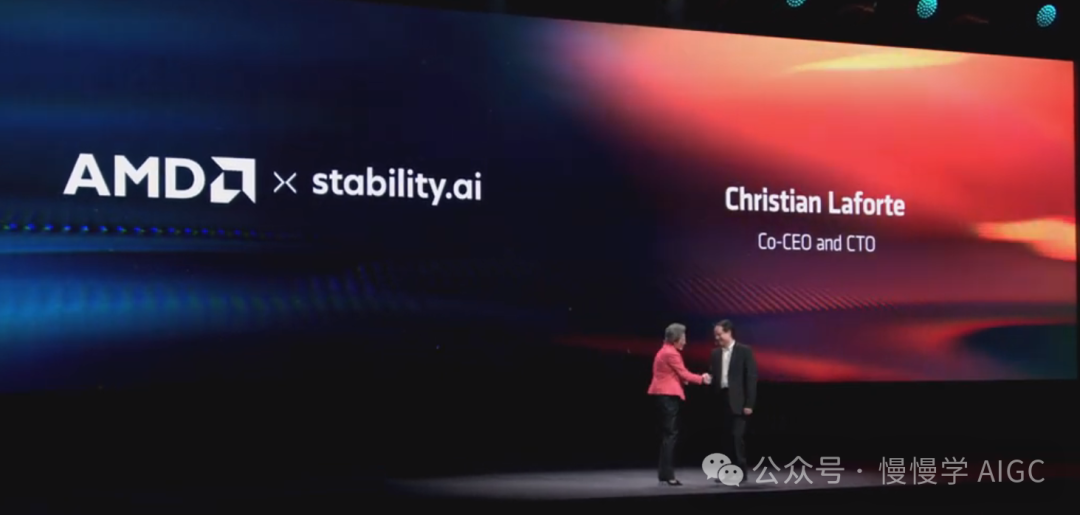 AMD 也在与领先的 AI 开发者紧密合作,优化他们的模型以在 MI300X 上运行。苏妈请来了重要合作伙伴 Stability AI 的 CTO 兼联席 CEO Christian Lafort。