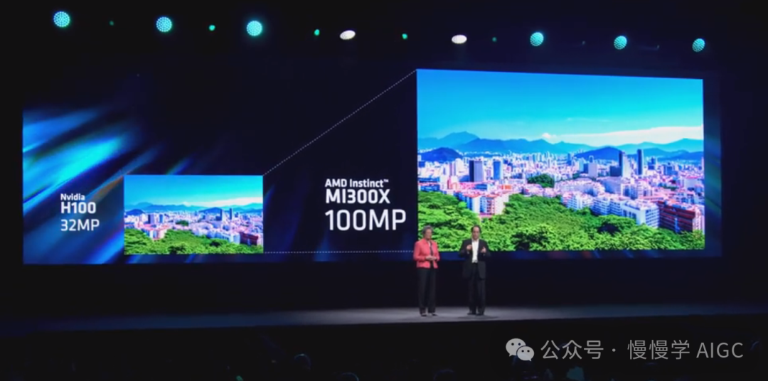 对于这个创意上采样功能,在 H100 上最高达到 3000 万像素。将代码移植到 MI300X 上几乎不需要任何努力就能达到 1 亿像素。内容创作者总是渴望更多像素。所以这带来了巨大的差异。这是一个巨大的进步。研究人员和工程师们真的会钟爱 AMD Instinct GPU 一开箱即可提供的惊人内存容量和带宽优势。