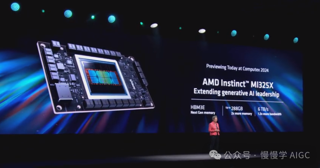 MI325X 通过高达 288 GB 的超快 HBM3e 内存和每秒 6 TB 的内存带宽,延续了 AMD 在生成式 AI 领域的领先地位。它使用与 MI300X 相同的基础架构,这使客户过渡到它变得很容易。(效仿老黄 H100 -> H200)