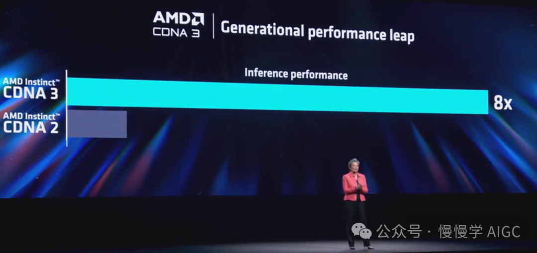 AMD 推出 CDNA 3 时,与上一代相比 AI 性能提高了 8 倍。