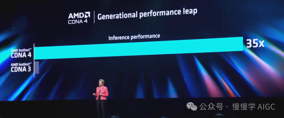 而对于 CDNA 4 有望实现 35 倍的性能增幅。也就是说比 CDNA 3 高出 35 倍。