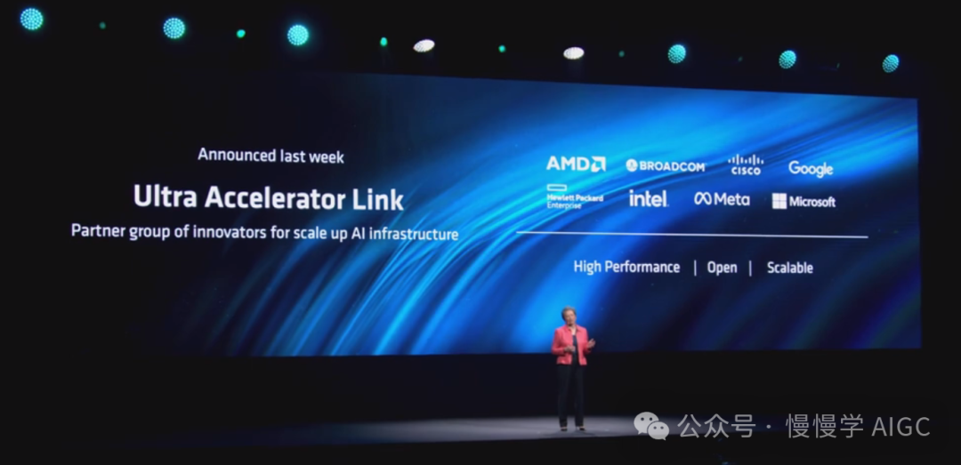 上周苏妈联合许多最大的芯片、云和系统公司走到一起,宣布计划开发一种高性能互连标准,可以正式连接数百个加速器,称之为"超加速器链路"或 UA 链路,这是一种经过优化的负载/存储互连,设计用于高数据速率运行,并利用 AMD 经过验证的 Infinity Fabric 技术。