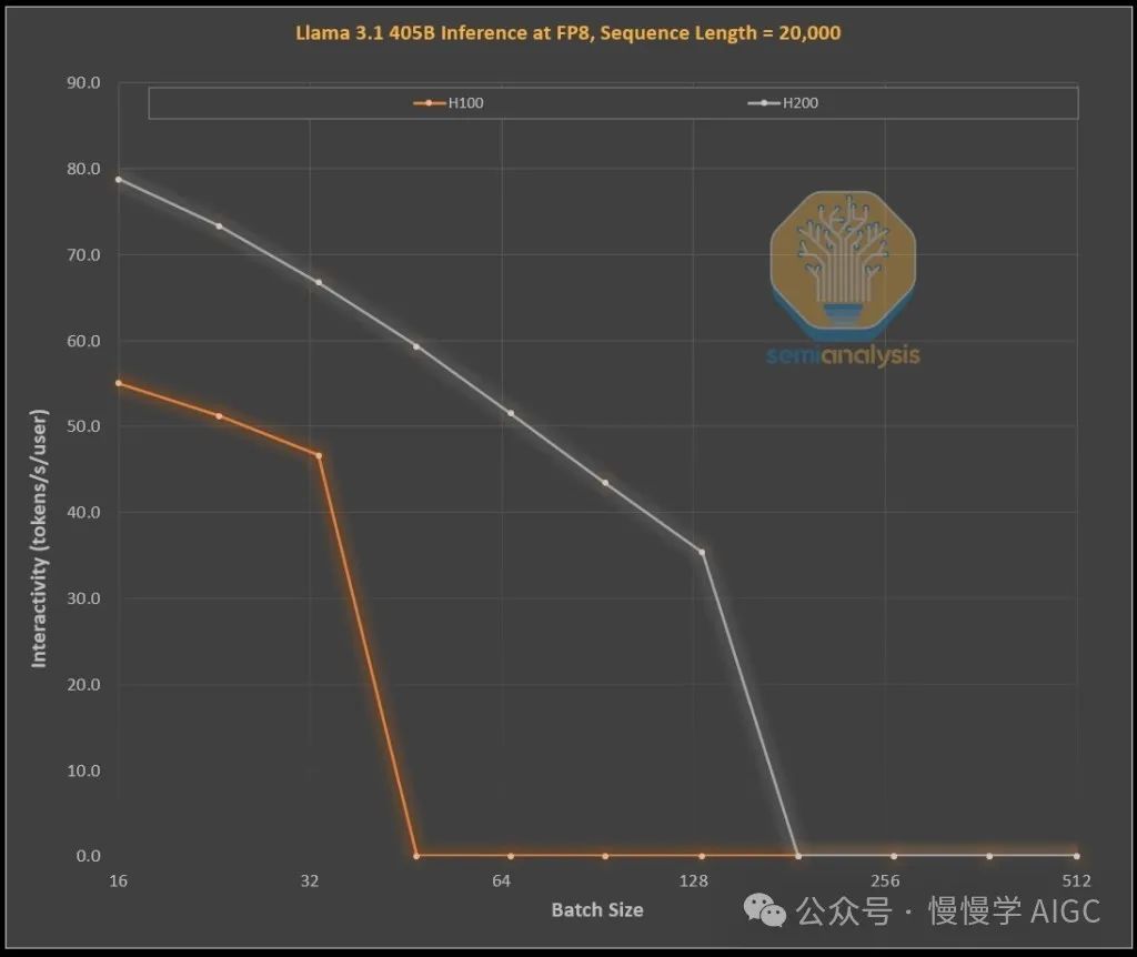 从 H100 升级到 H200 时,仅仅是增加了更多更快的内存,就产生了两个效果: