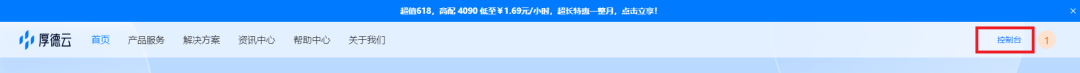 注册成功并充值 1 元后,在首页右上角点击“控制台”