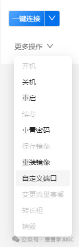 回到控制台 GPU 主机页面,在“更多操作”菜单里选择“自定义端口”,如下图所示