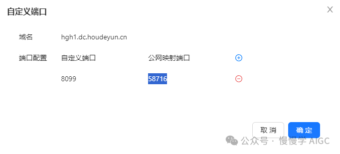 在添加完成后,再次点击“更多操作”菜单里选择“自定义端口”,查看当前映射情况。如下图所示