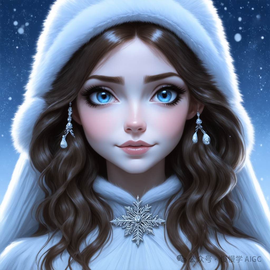 Snow Princess, smooth soft skin, symmetrical, soft lighting, detailed face, concept art, digital painting, looking into camera.