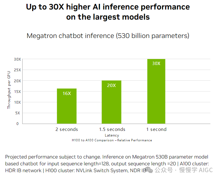 先进的推理性能:H100 的推理性能比之前的型号提高了 30 倍,在推理性能和安全性方面树立了高标准。