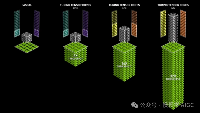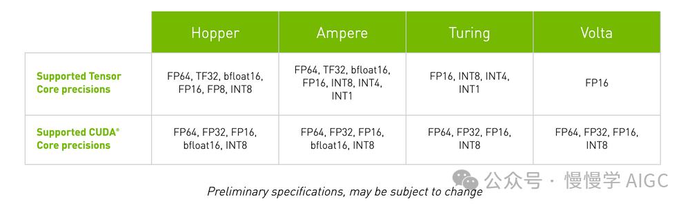 GPU 从一代到下一代的技术进步在某种程度上可以通过 Tensor Core 技术的进步来部分描述。