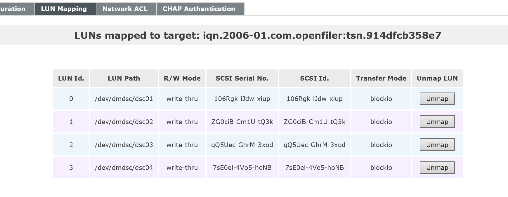 注:以下操作在Openfiler服务器执行(IP:172.23.240.111)