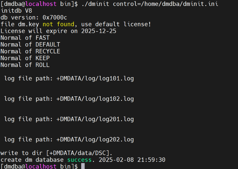./dminit control=/home/dmdba/dminit.ini